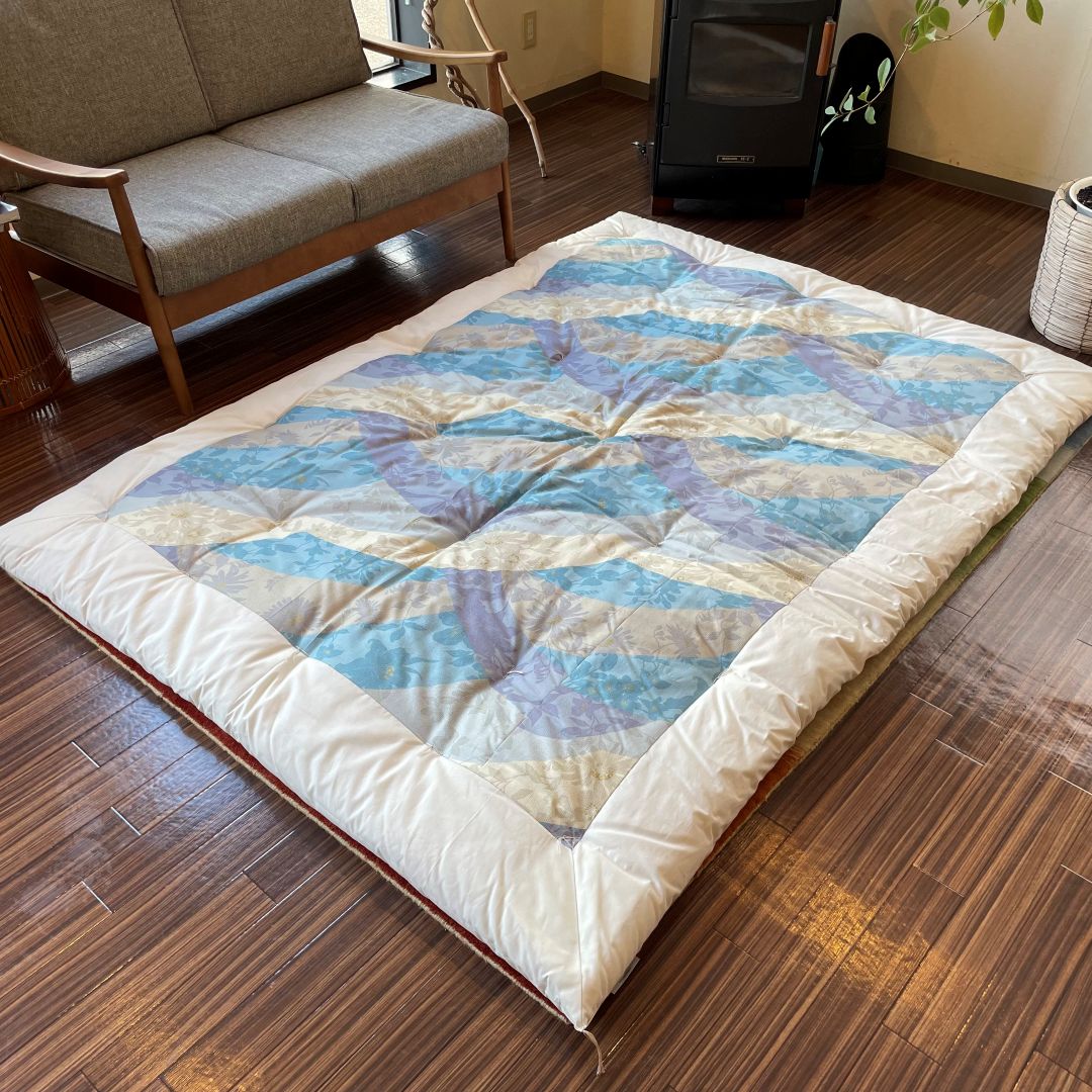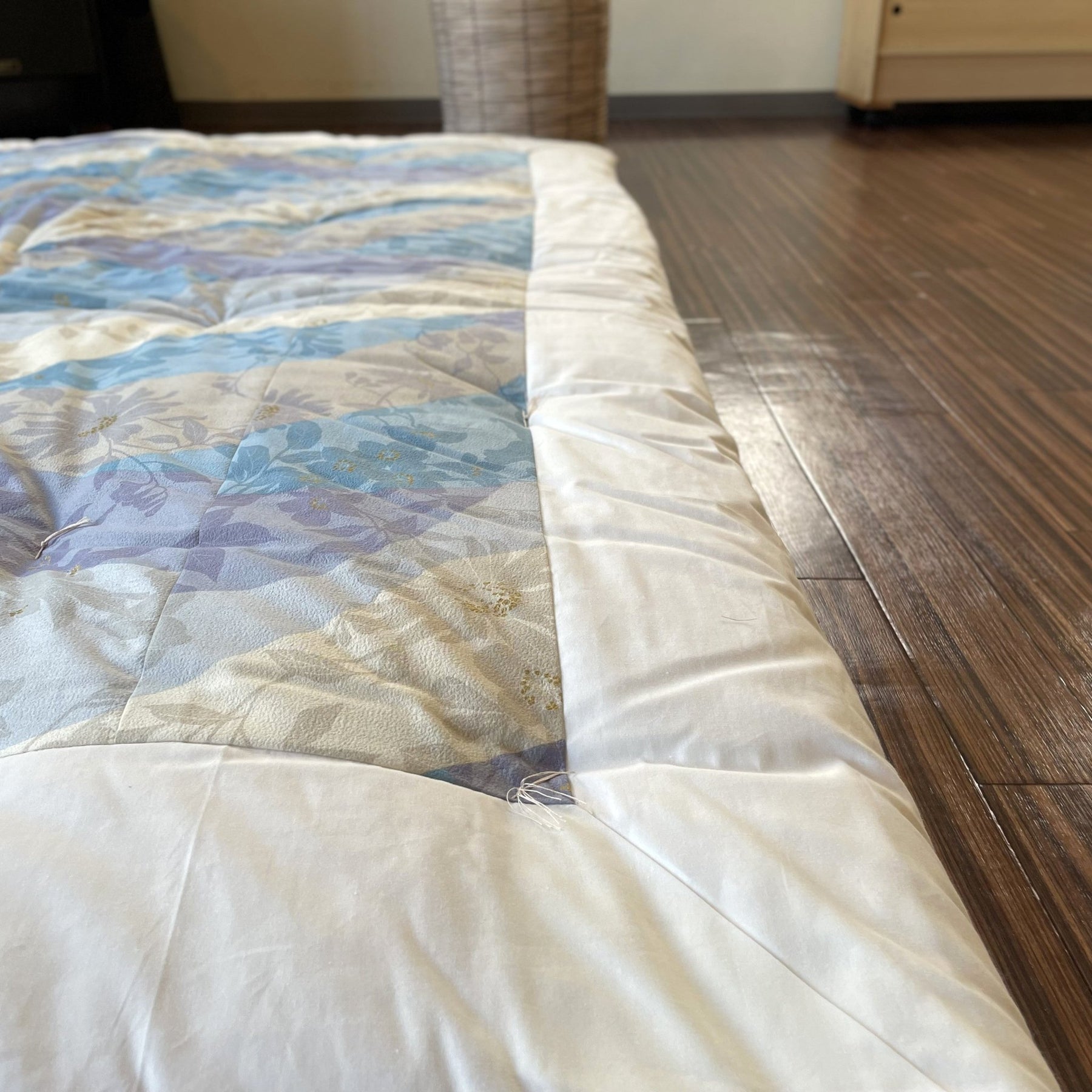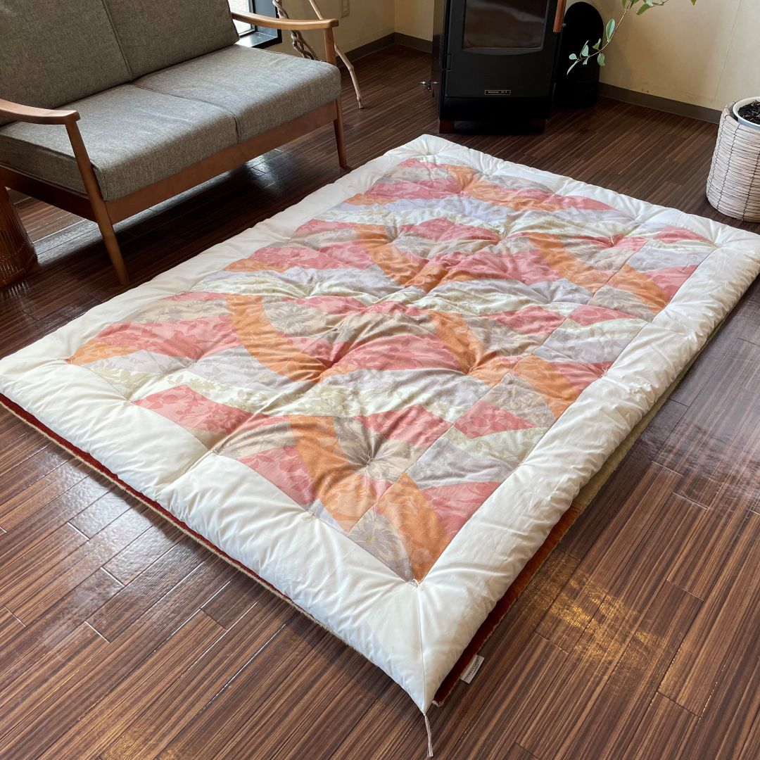 ご注文サイズに合わせてお仕立てしておりますが、綿を入れた後の新品完成サイズはボリュームがあるため、幅・丈ともに5〜10cm前後短くなる場合がございます。 |