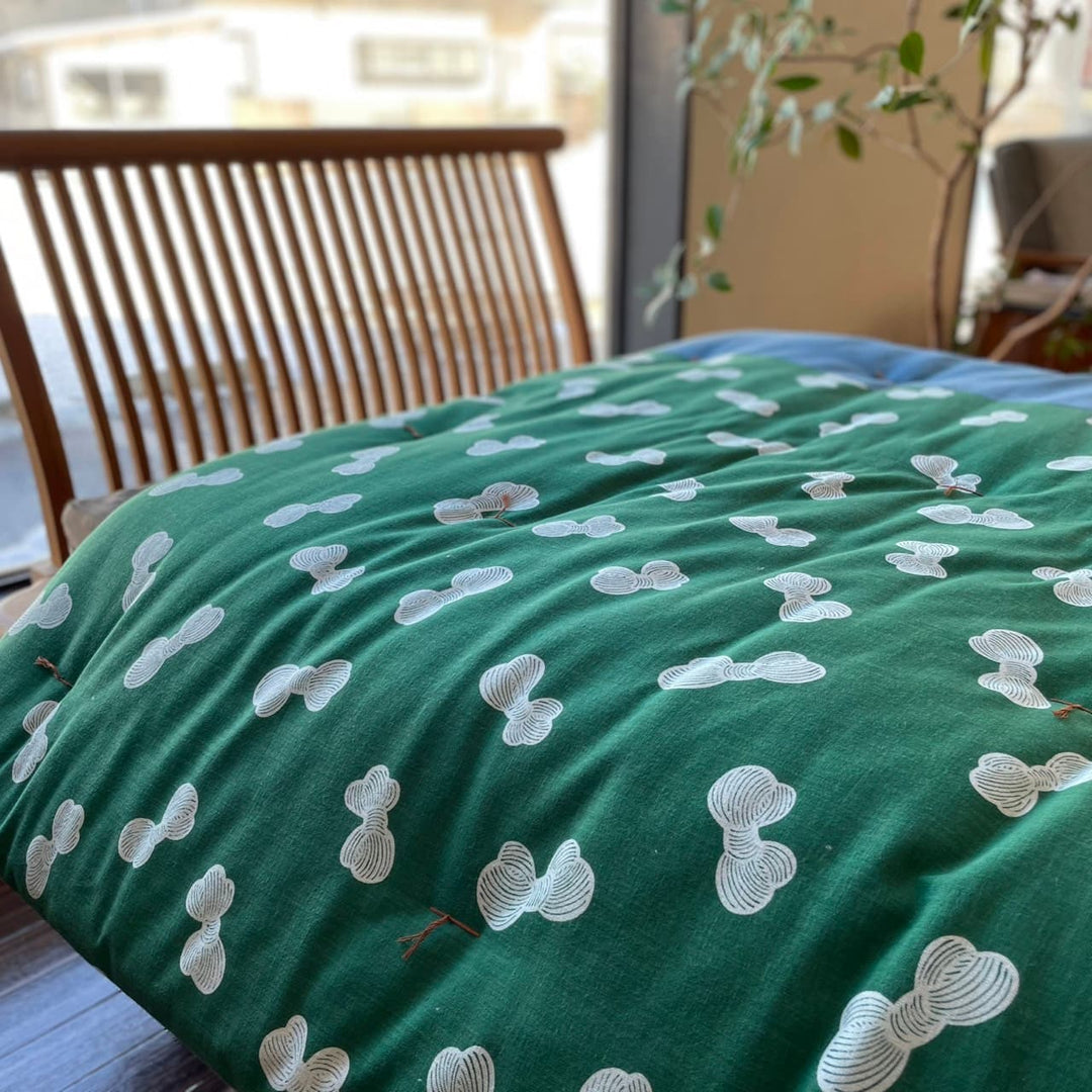 掛布団は中綿、生地の重さを合わせると約4㎏ほどあります。(150㎝×210㎝の場合)
