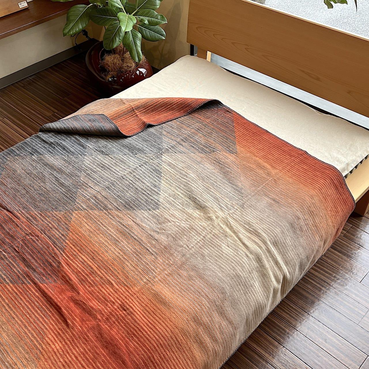 イベナ毛布は、羽毛布団と一緒に使える軽量毛布。羽毛布団の下または上に掛けることで、よりあたたかくお休みいただけます。